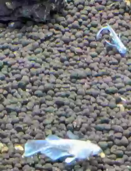 与えた餌を、食べそびれたレーヴメダカがいるのかも・・・。